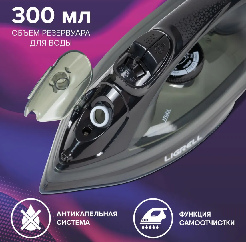 - Утюг LIGRELL LSI-3048A 3000Вт керам. пар.уд. автооткл. верт.отпарив.антикап.