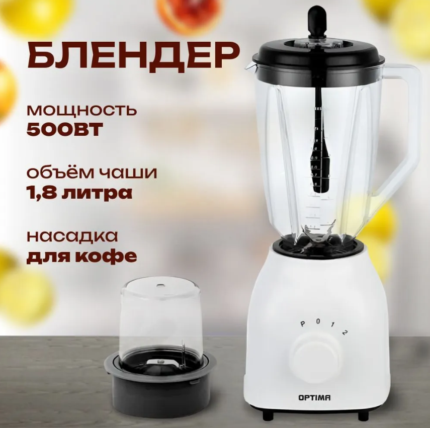 - Блендер стац. OPTIMA OTB-678P (500Вт, 2скор., 1,8л, пл. кувшин, импульс,измельчитель)
