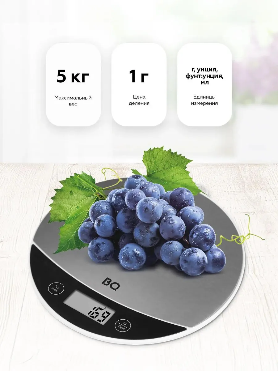 - Весы кухон. BQ KS1002 электрон. 5кг. нерж.сталь
