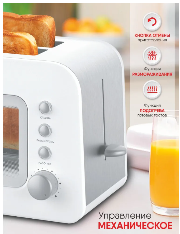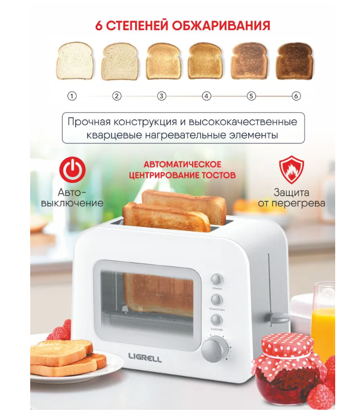 - Тостер LIGRELL LTS-5022G 850Вт, 2тоста, смотровое окошко, поддон д/крошек